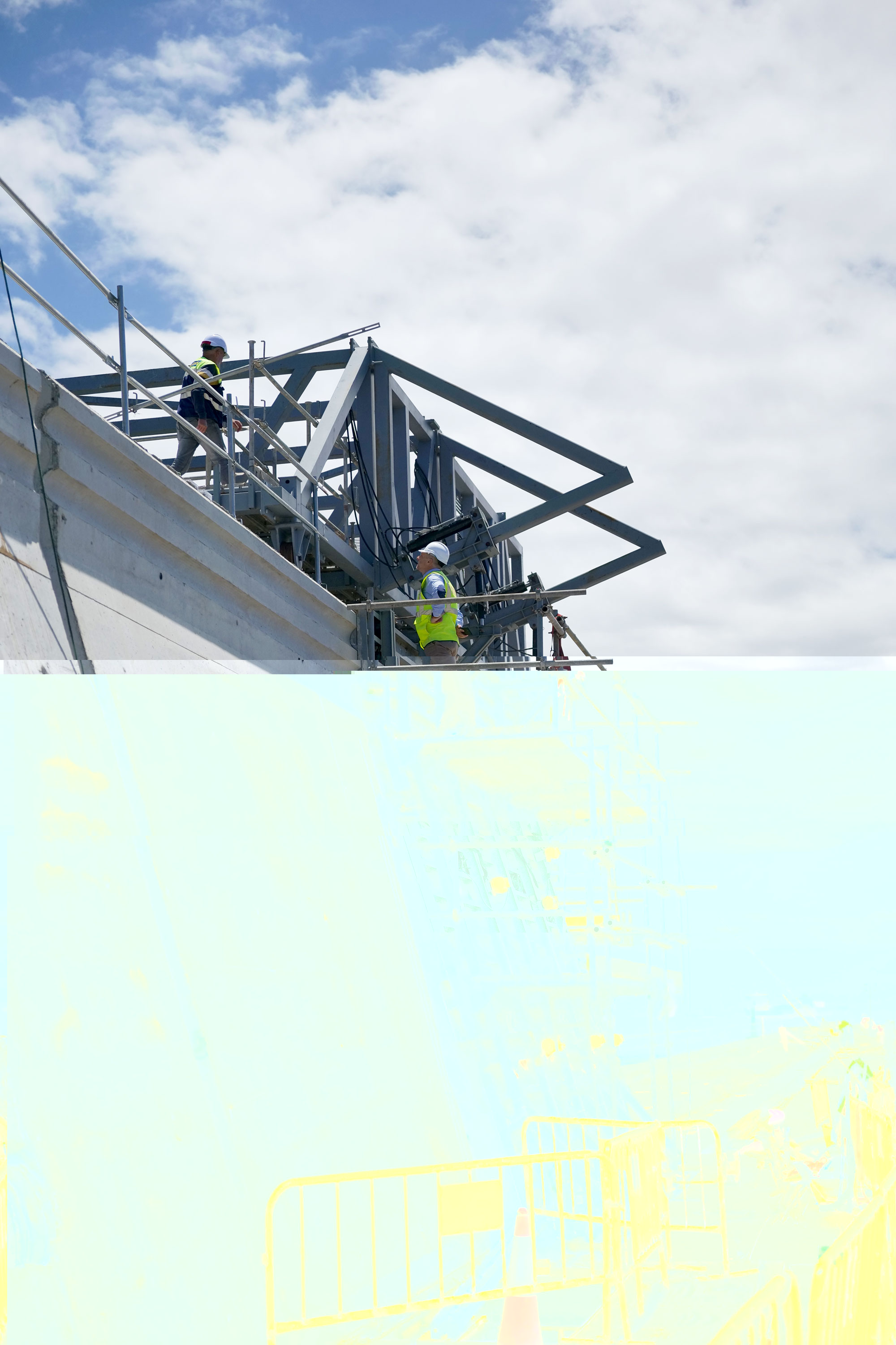 El carro incorpora una centralita hidráulica combinada con cilindros y ruedas de guiado, lo que permite efectuar de manera controlada y eficiente las operaciones de encofrado, desencofrado y traslación. Este procedimiento garantiza la regularidad geométrica, la seguridad en la ejecución y la optimización de los plazos de obra.