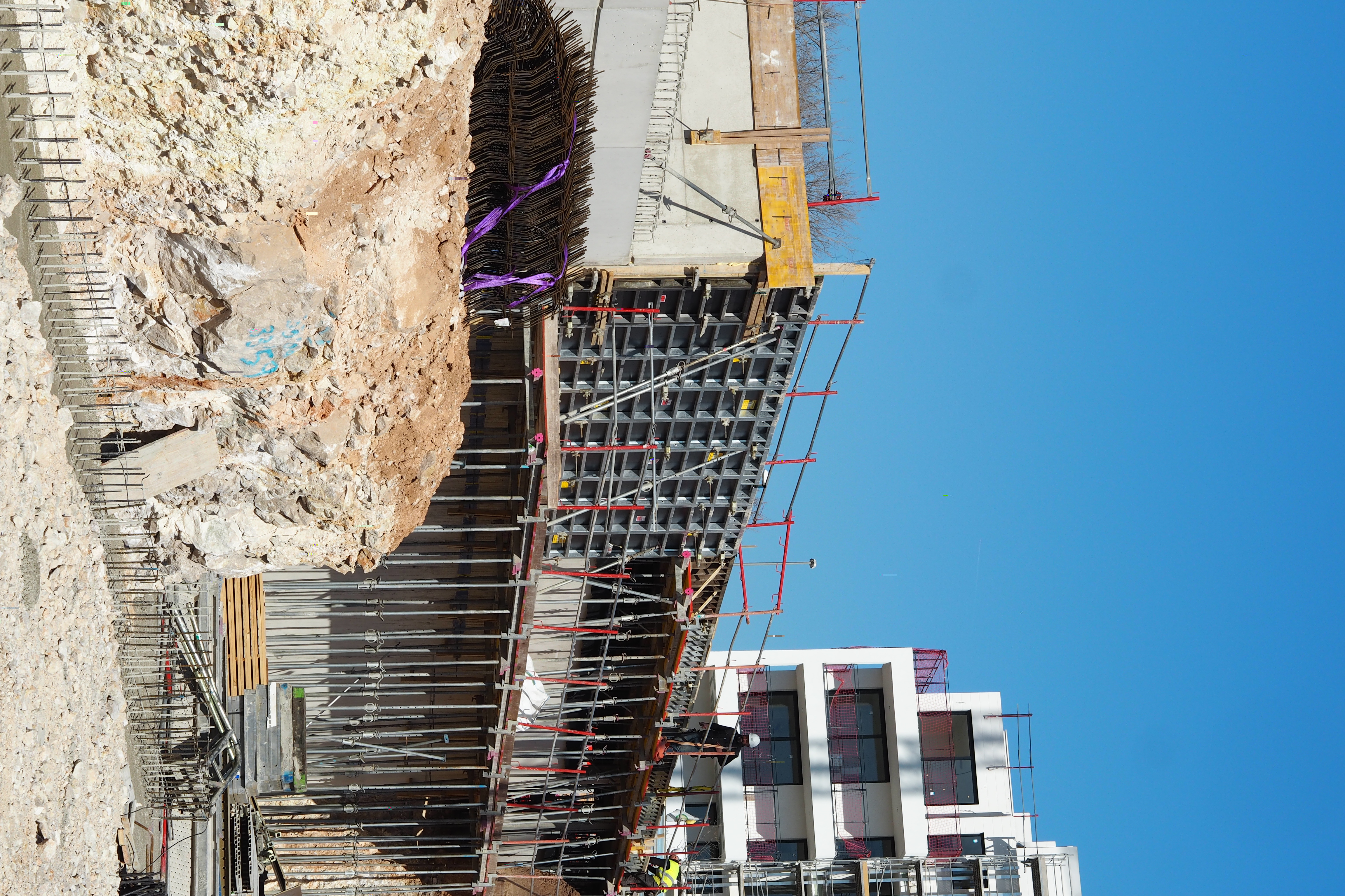 A lo largo de las diferentes fases, STEN ofrece una solución de encofrado completa, desde soluciones de encofrado para muros, pilares y losas, hasta el montaje de andamios para los acabados exteriores de cada bloque.